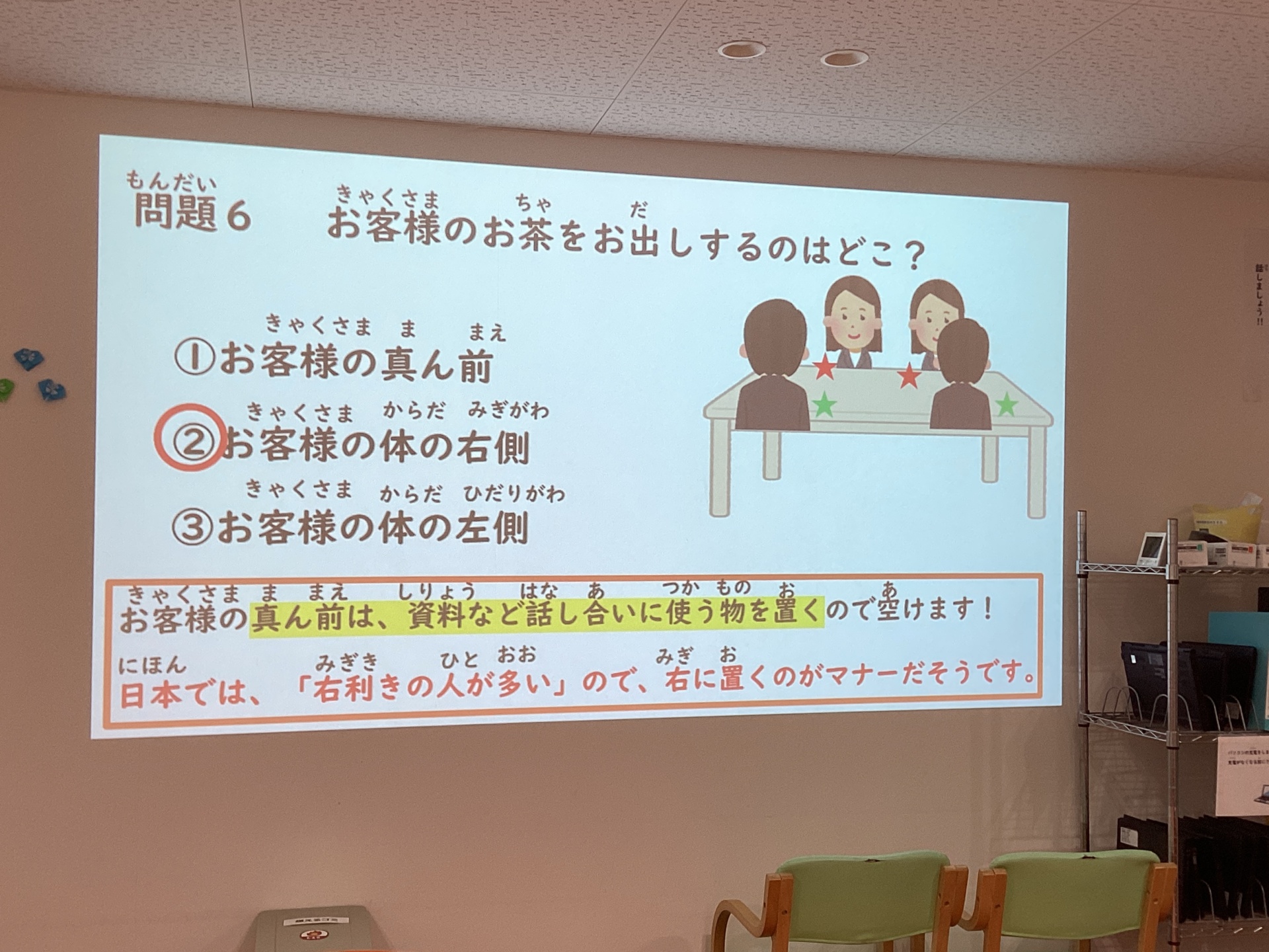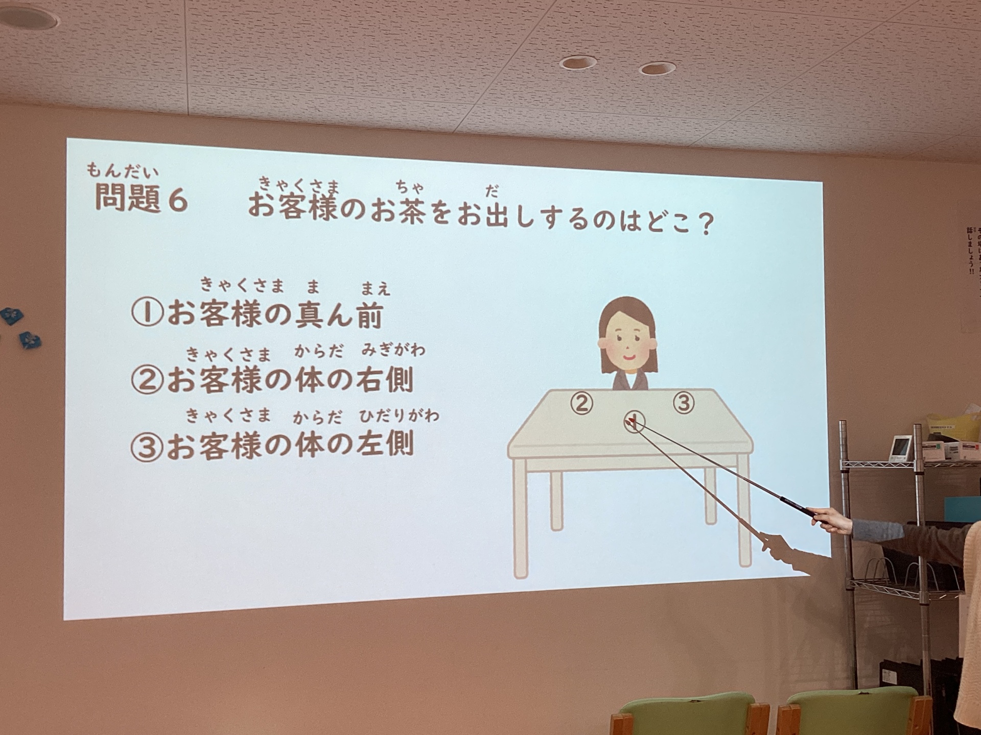 正解は、「お客様の体の右側」でした!
