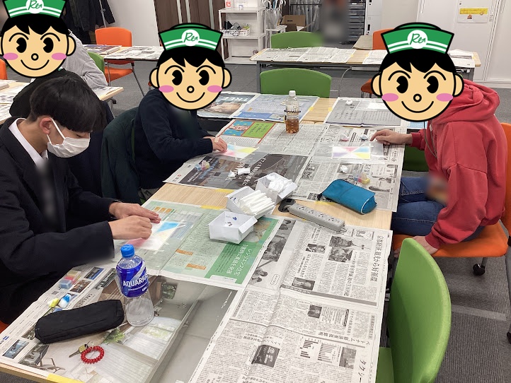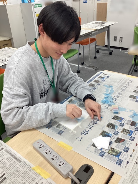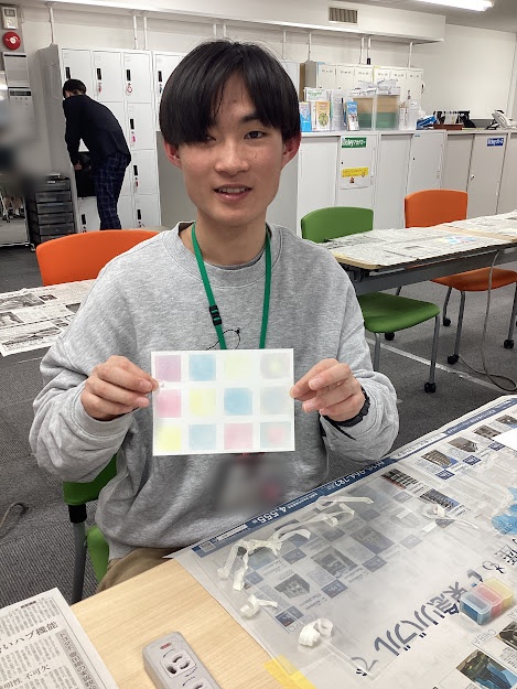 グループ内で順番に画用紙に色をのせていく