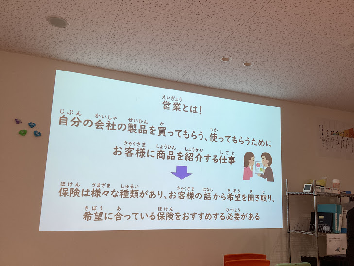 本日は、まずはみんなで「営業」のお仕事について意味を確認していきました。