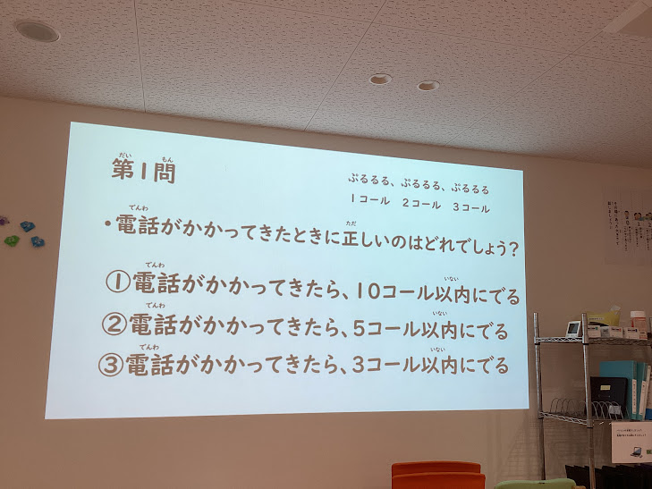 それから、どんな時に電話をするのか。使うものはあるのか確認しました。