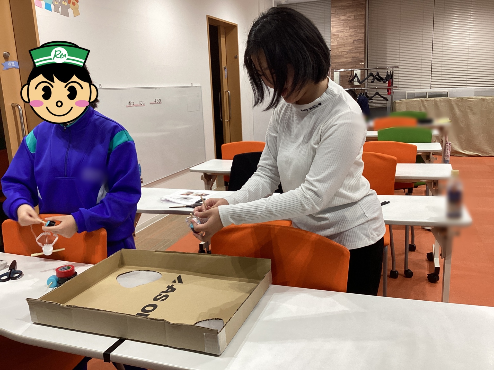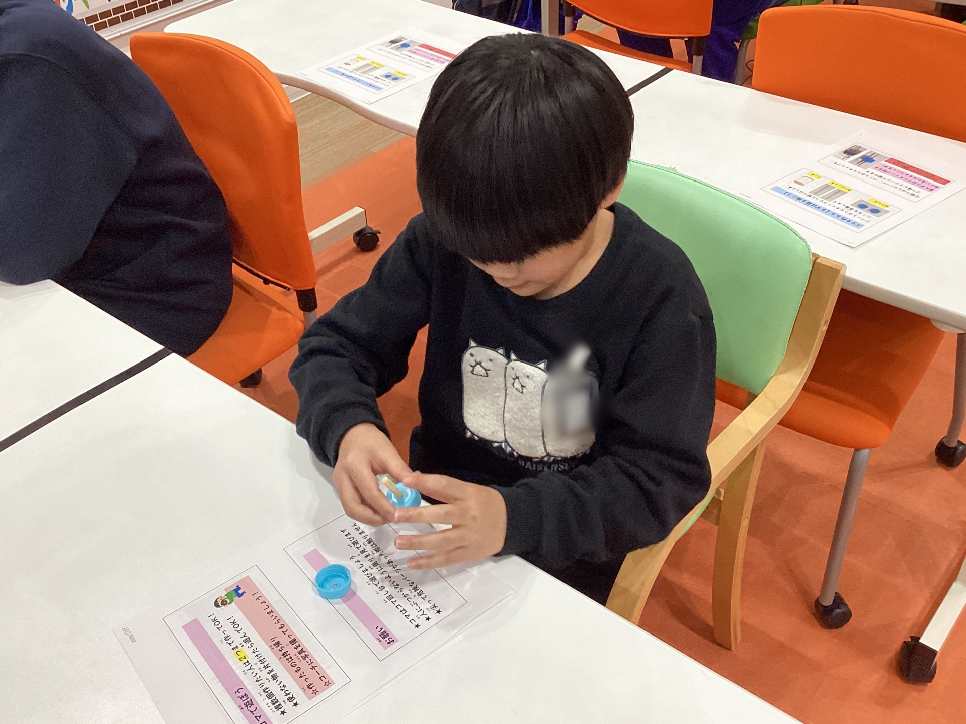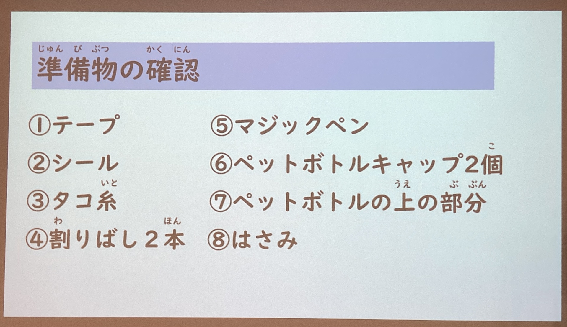 今日はペットボトルのキャップや上部、割りばしなどを使って発射台付のコマを作りました。