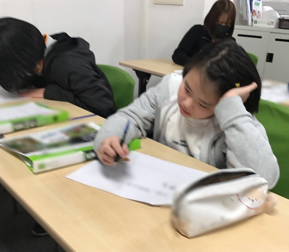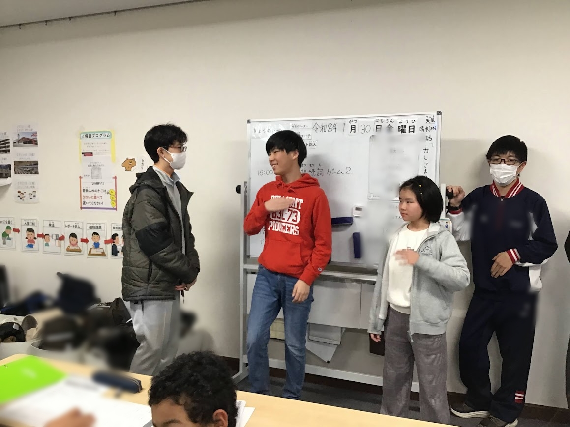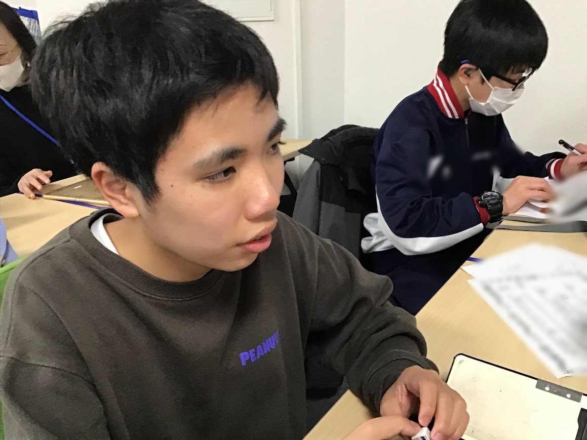 本日は【接続詞ゲーム】を実施しました。提示された最初の文を「しかし、だから」の接続詞を使い、自由な発想で後続の文章を考えます。この活動により文と文の「つながり」を可視化し、筋道を立てて考える力が養われます。また接続詞に注目することで、「この後に結果が来るな」「ここで反対の意見に変わるな」と文章の展開を予測できるようになります。