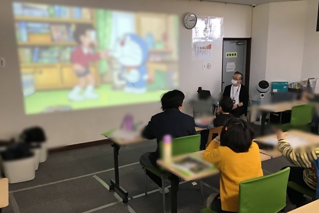 アニメ鑑賞を行い、その後に内容に沿ったクイズに挑戦していただきました。