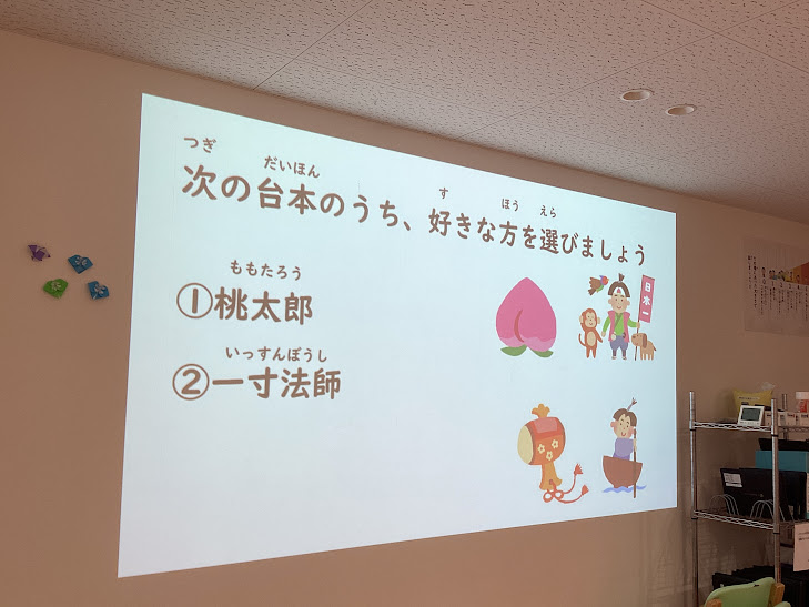 「桃太郎」「一寸法師」のストーリーの文章から選んで行いました!