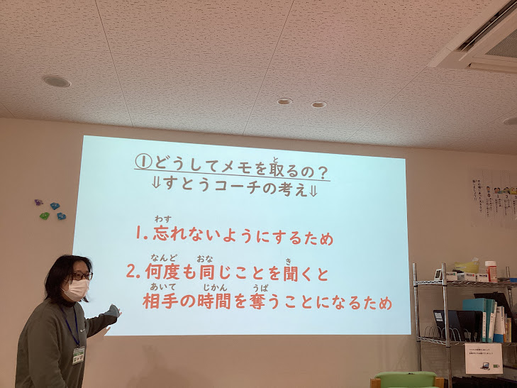 それでは実際に、コーチの話を聞いてメモを取ってみましょう!