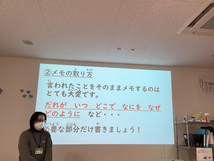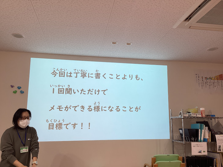 今回は話を聞きながら重量な言葉をメモできるように取り組みました。