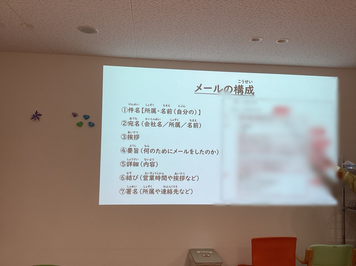 ビジネスメールがなぜ求められるのか、メールの構成はどのようなものであるかをコーチから説明したあと