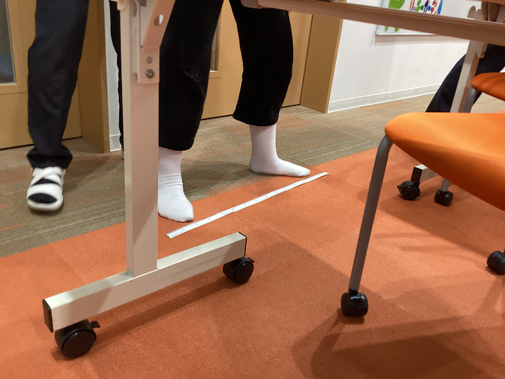 自分で「ここだ!」と思うくらいの長さで足を開いて測定しました。