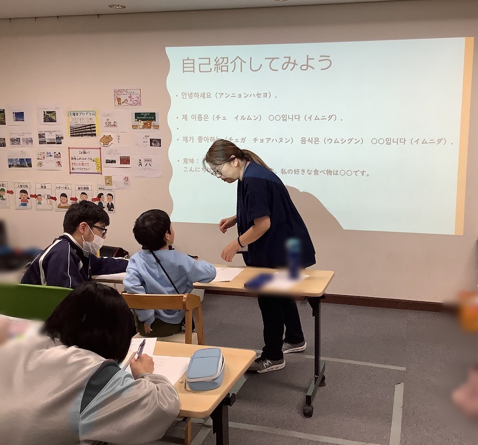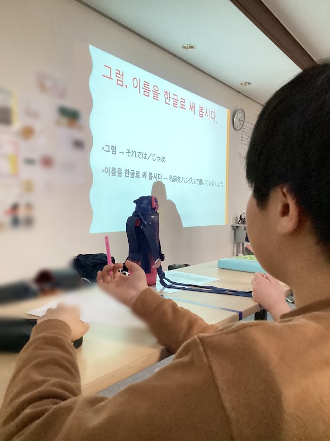 今回は、自分の名前をハングルで書く活動を通して、ハングルの文字に親しんでもらいました。