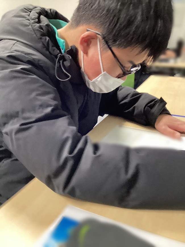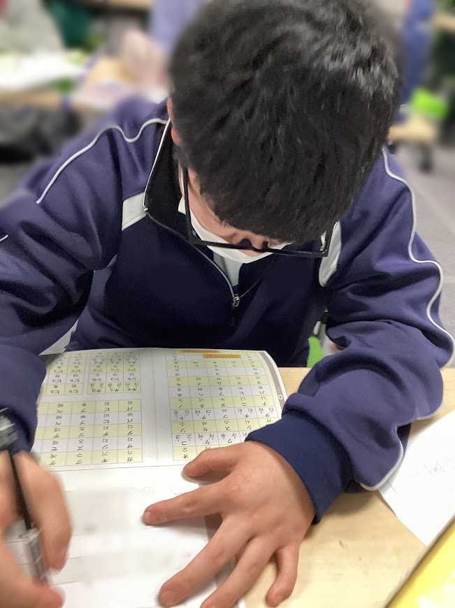 「これはどの文字かな?」と表をじっくり見比べながら、自分の名前を丁寧に書いていきました。
