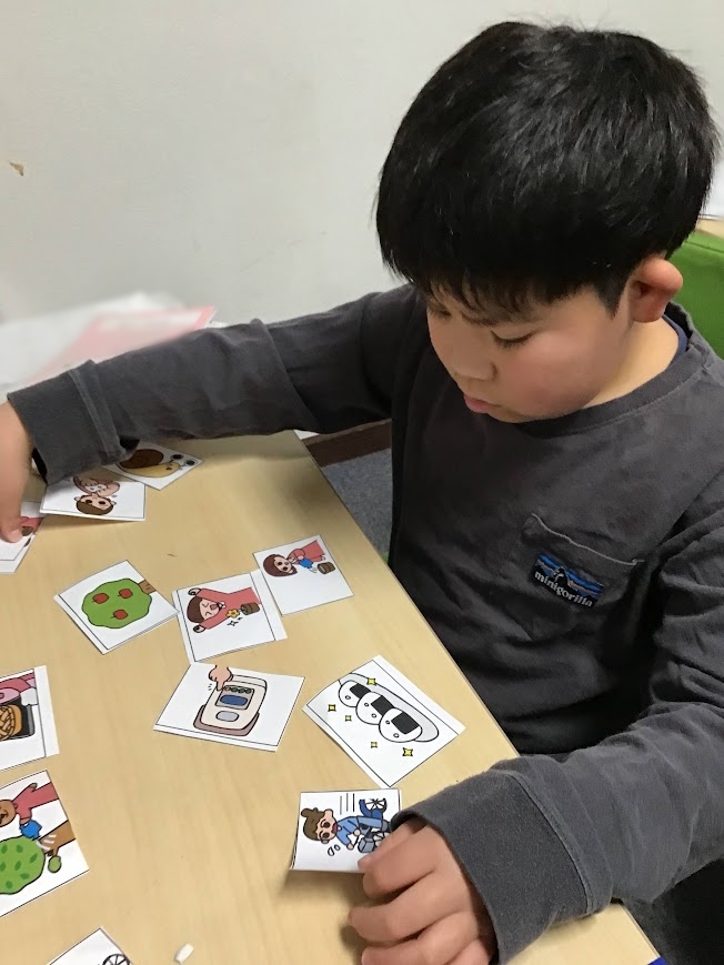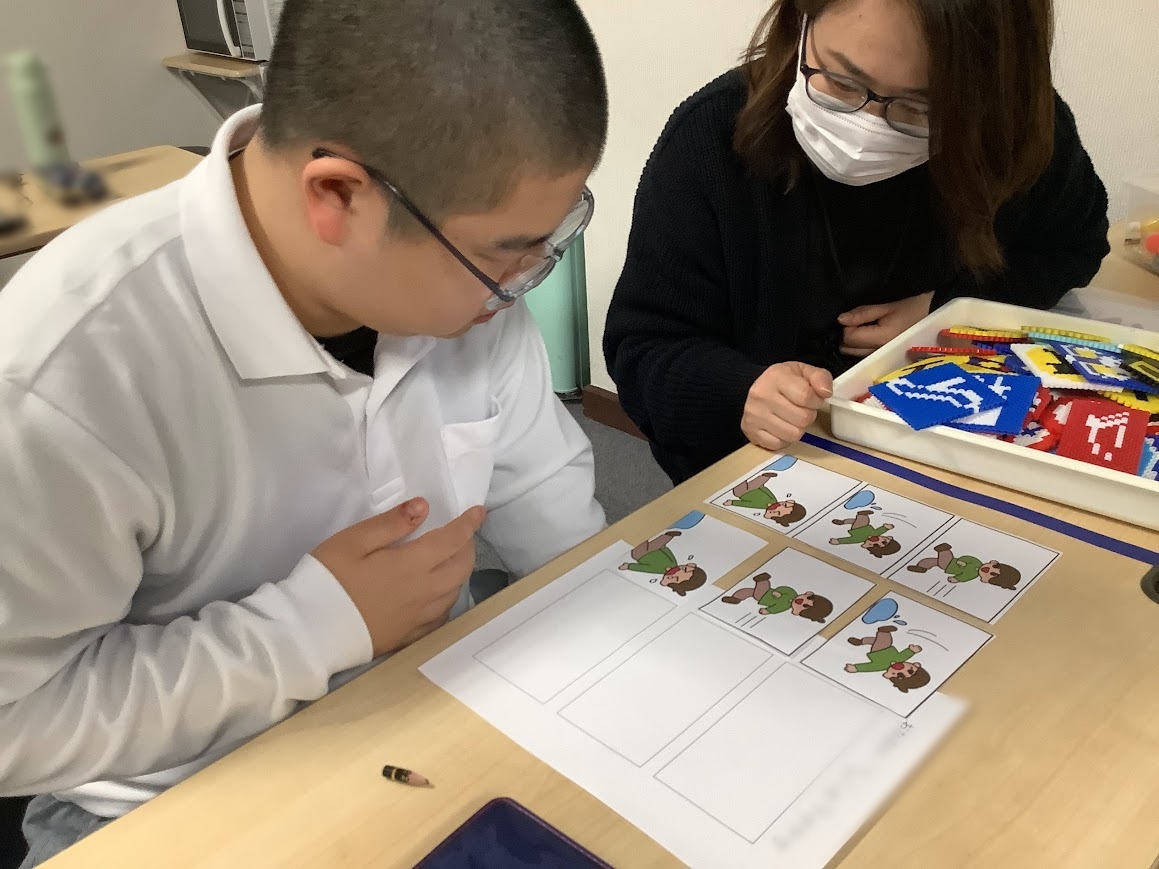 一部のアカデミー生には、3コマ、4コマ漫画を場面ごとにバラバラにしたものを、原因と結果を考えながら、再構築する課題にも取り組んでいただきました。