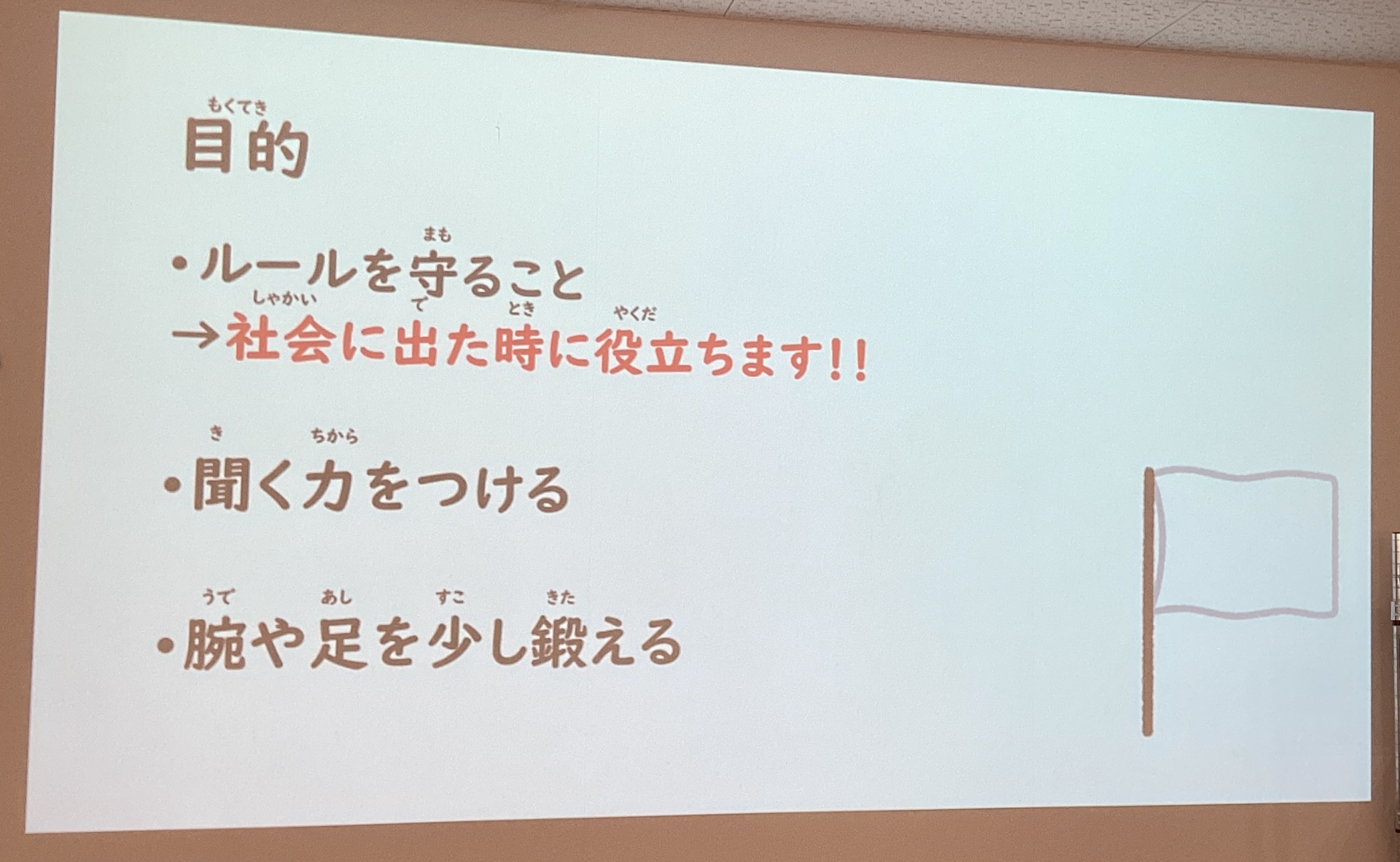 今日はそんな旗揚げゲームに足を上げる指示を追加して行いました。