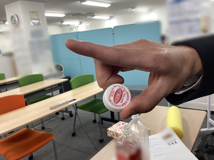 文字通りペットボトルのキャップを使って