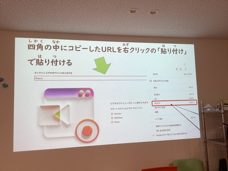 URLをコピー・ペーストをしてからパワーポイントの操作に戻ります。