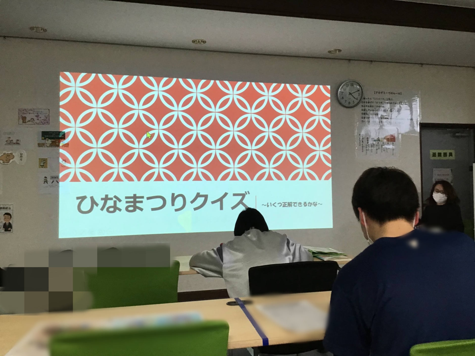 本日は、季節の行事に親しむ活動として「ひなまつりクイズ」を行いました。