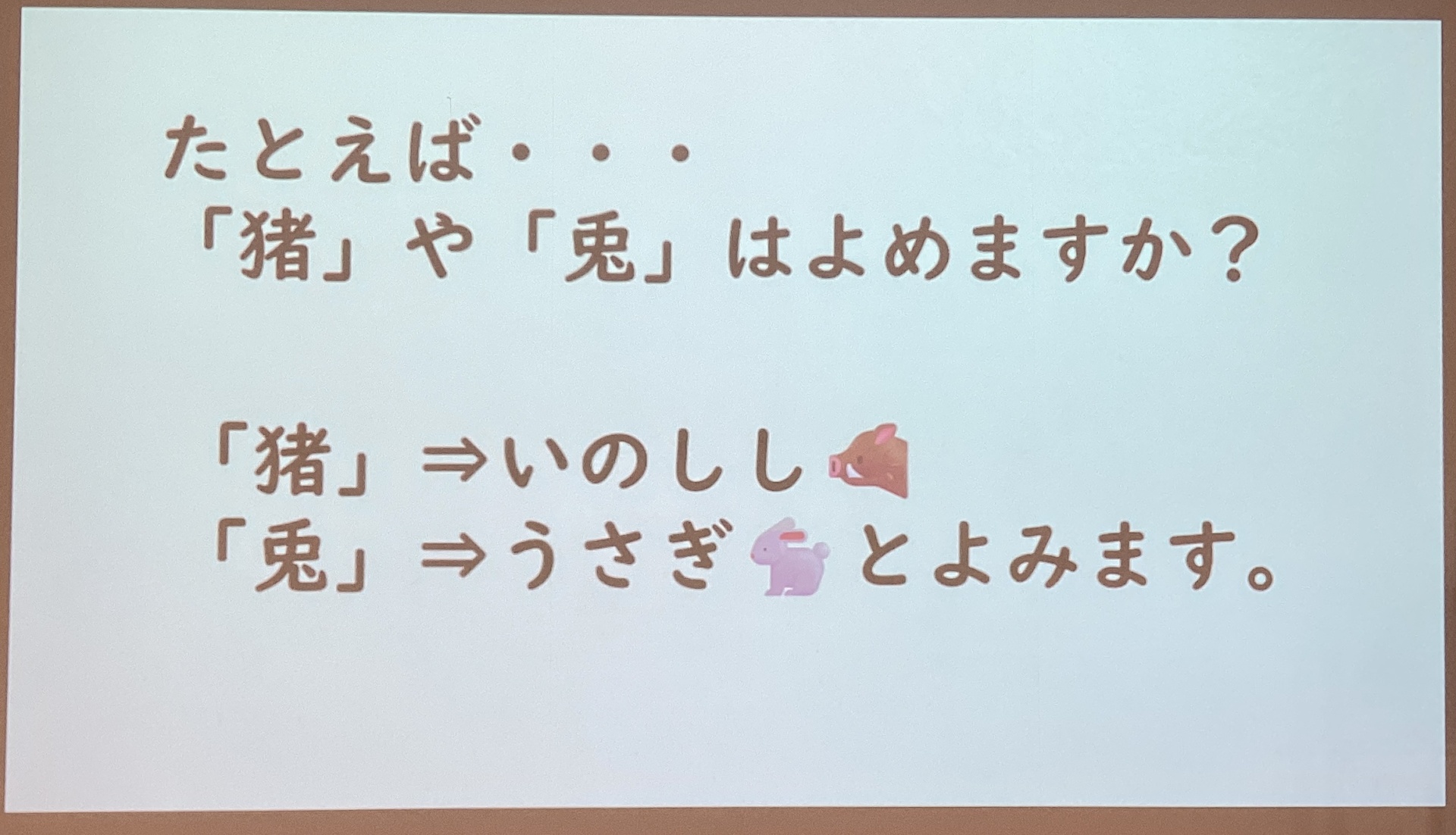 「猪→いのしし」「兎→うさぎ」ですね。