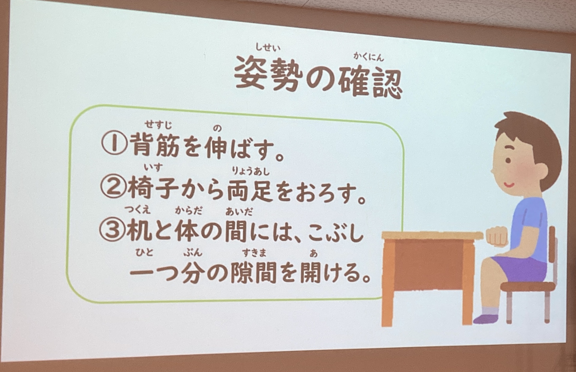 まずは姿勢とホームポジションの確認をしました。