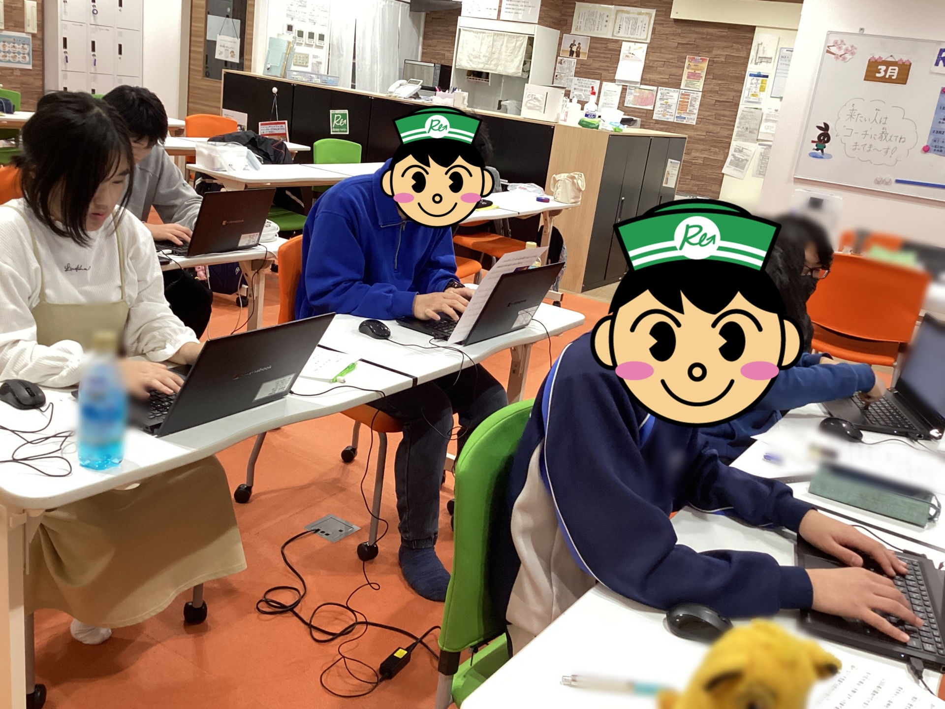 わからないものがあったら、コーチの許可をとり、パソコンで調べます。