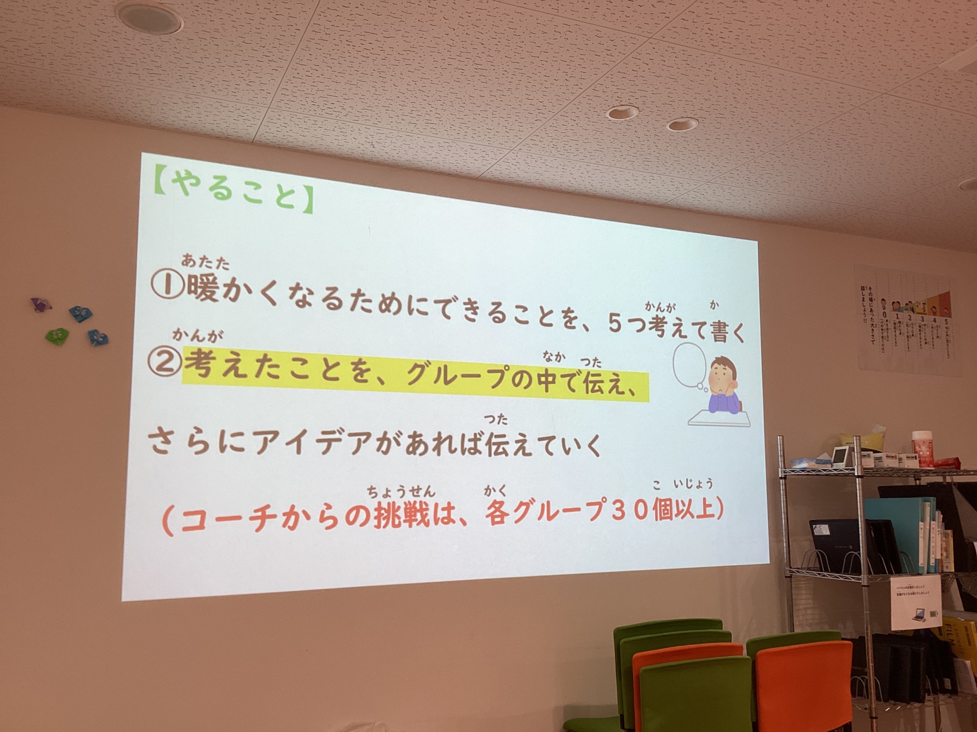 今回の話し合いのテーマは「暖かくなるためにできること」です。