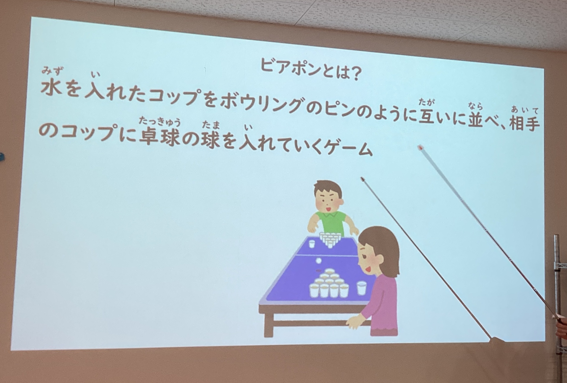 ビール(または水)の入ったコップにピンポン玉を投げ入れるパーティーゲームだそうです。