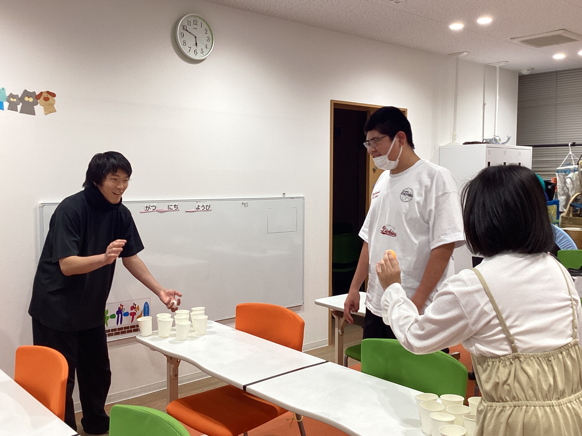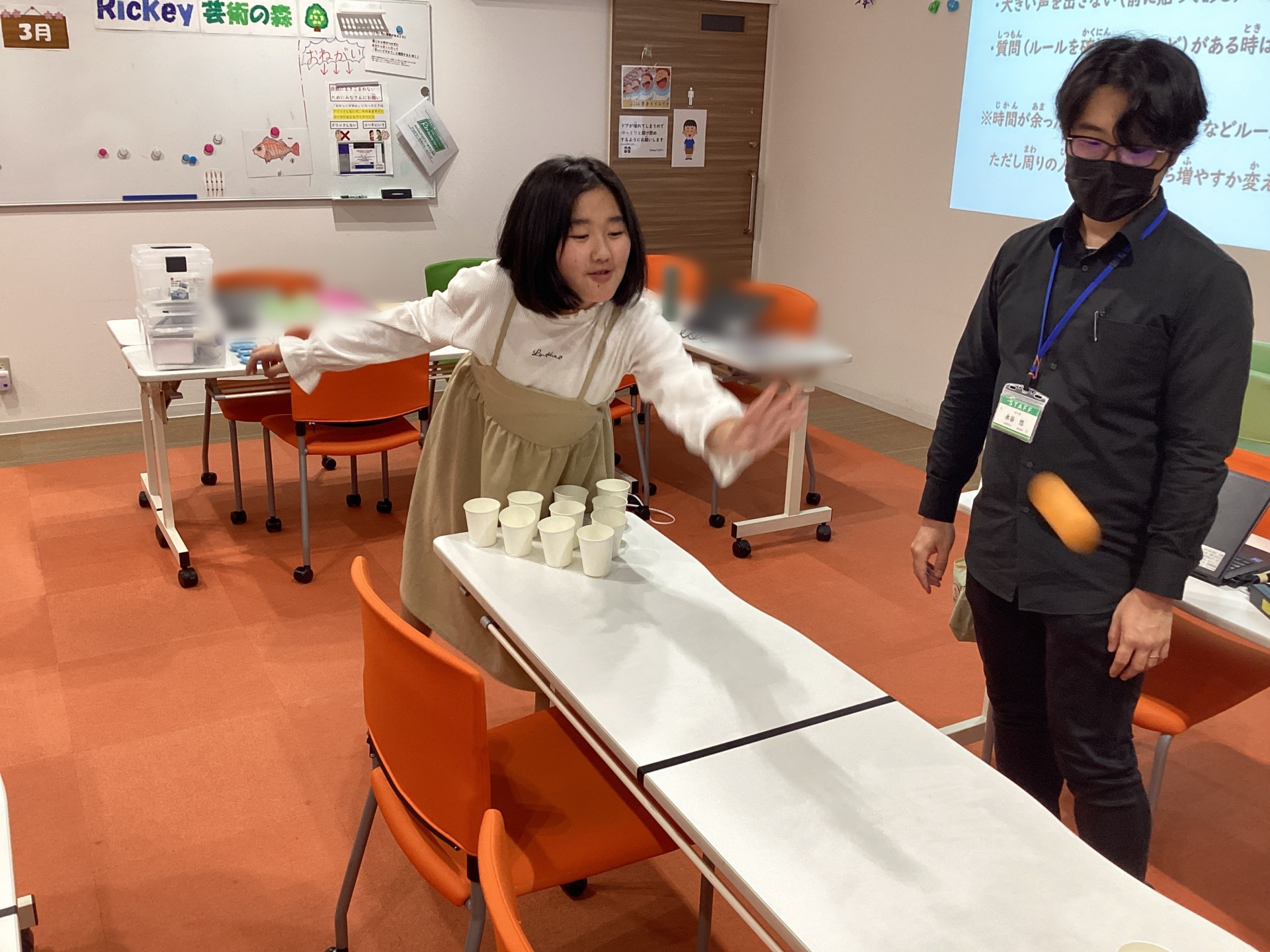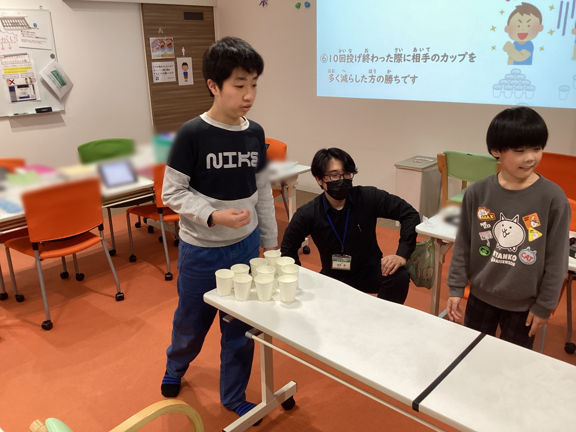 相手のカップに入れたら、そのコップをテーブルから取り除きます。