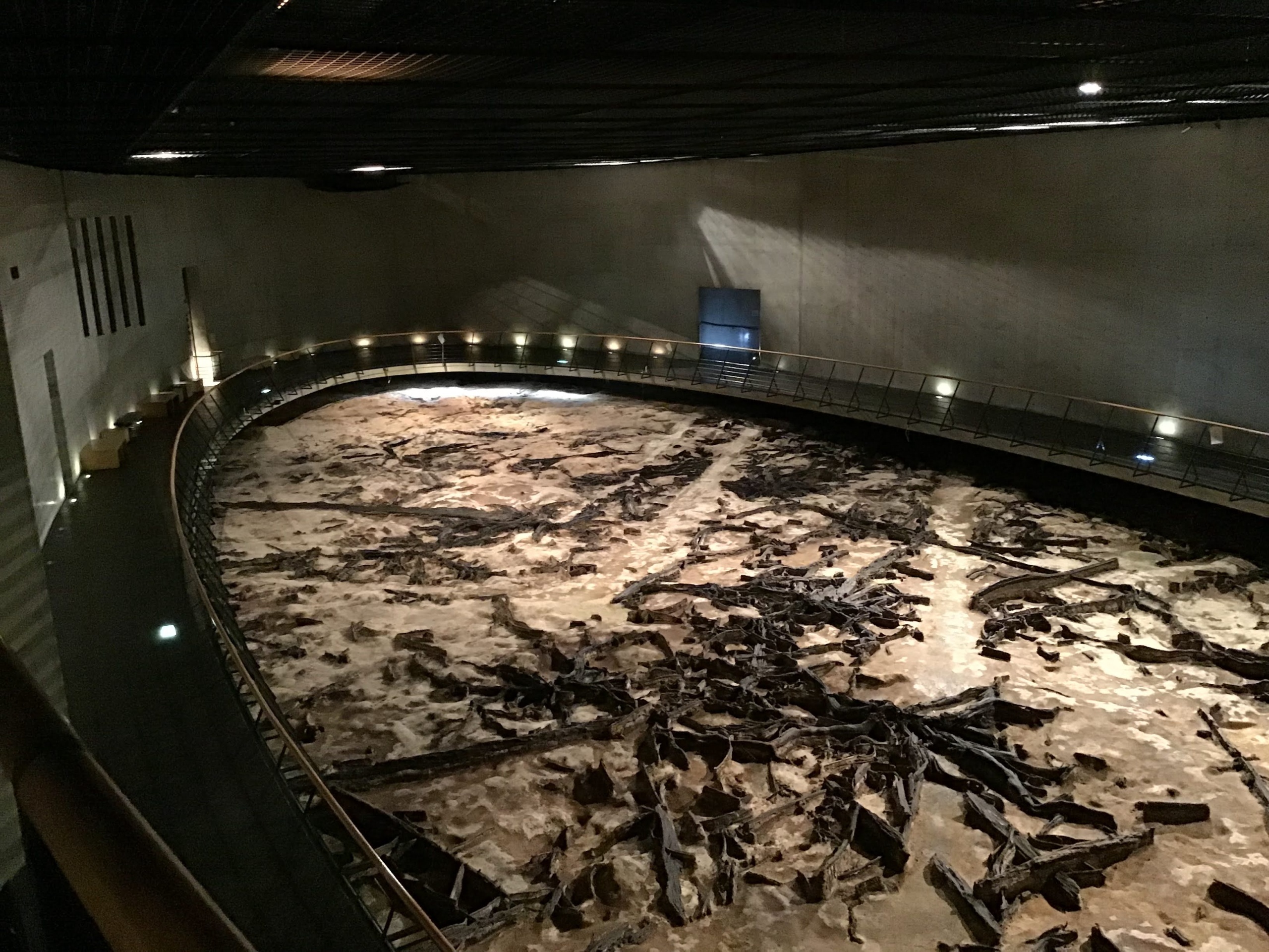 約2万年前のたき火のあとや森のあとを見つかったままの場所でそのまま保存、展示されています。
