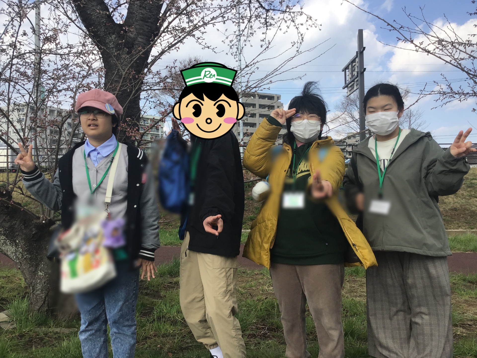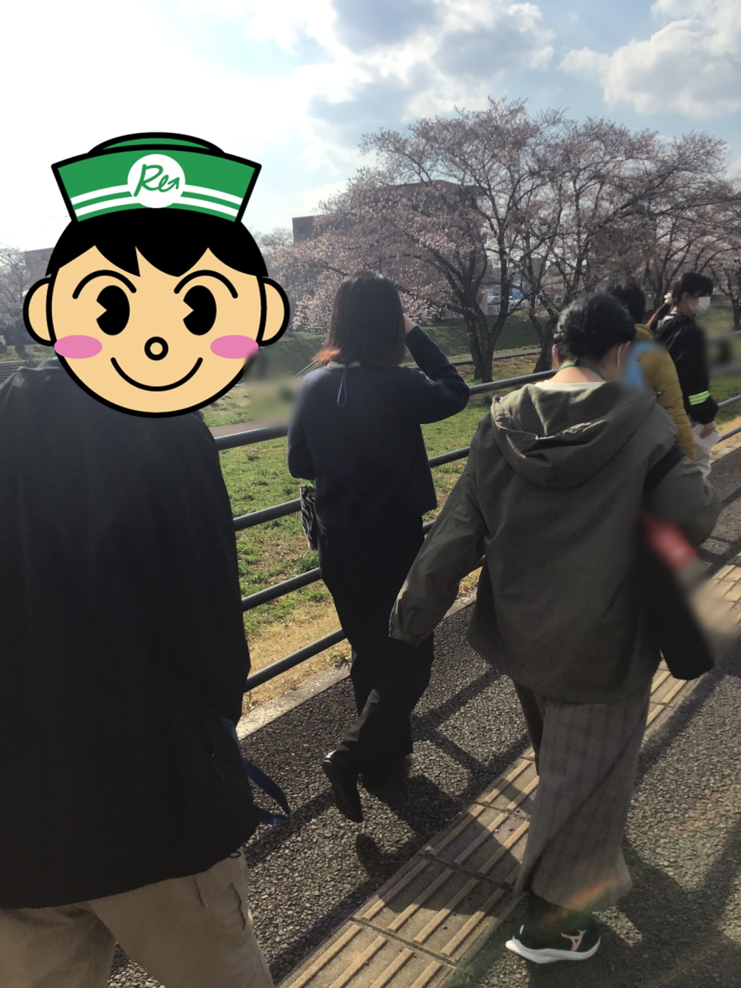▼桜の前で集合写真を撮りました!みなさん、現在流行のポーズをされています🎵