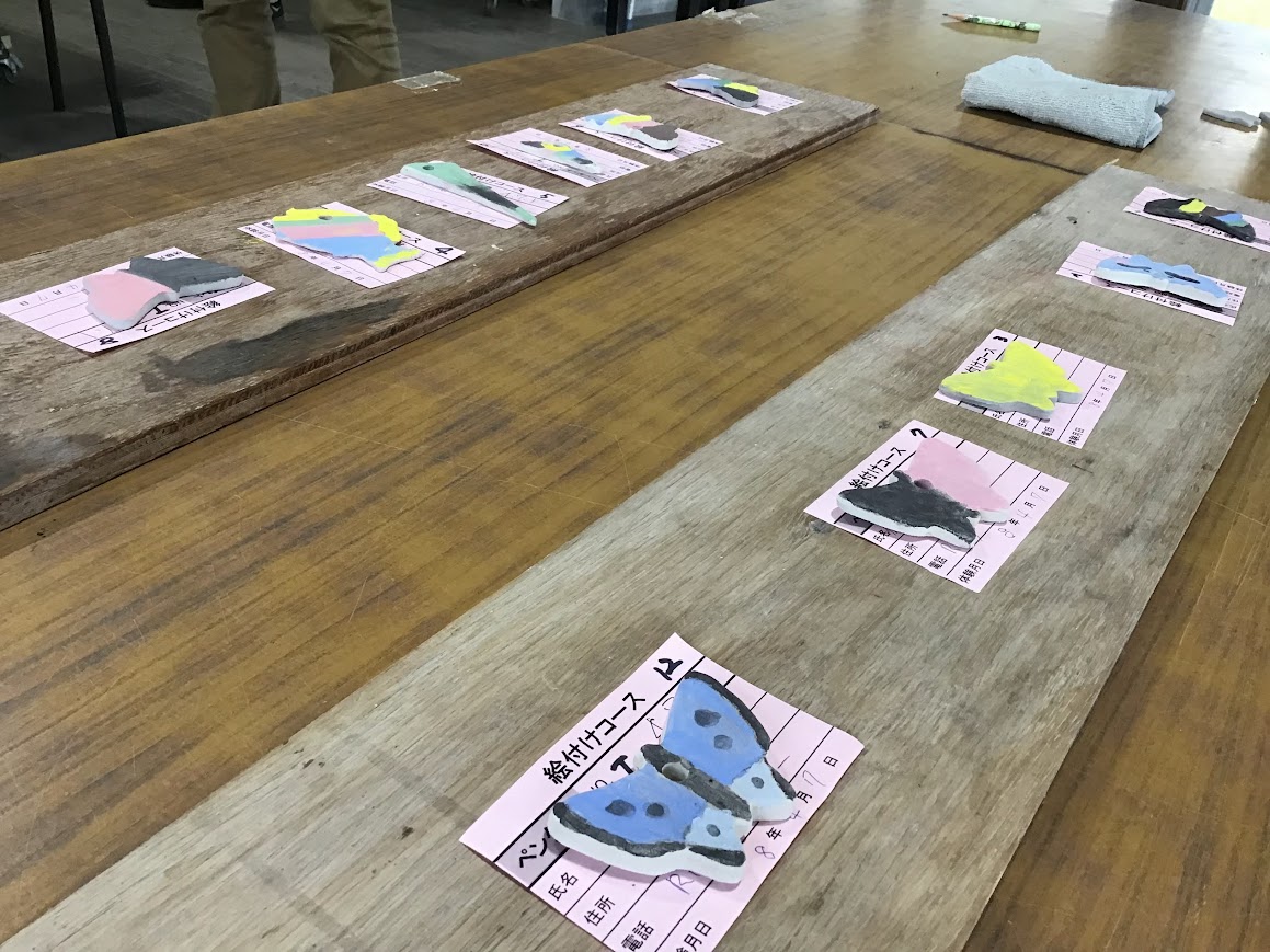 まずは色付けする素体を選びます! 蝶の形が人気でした!