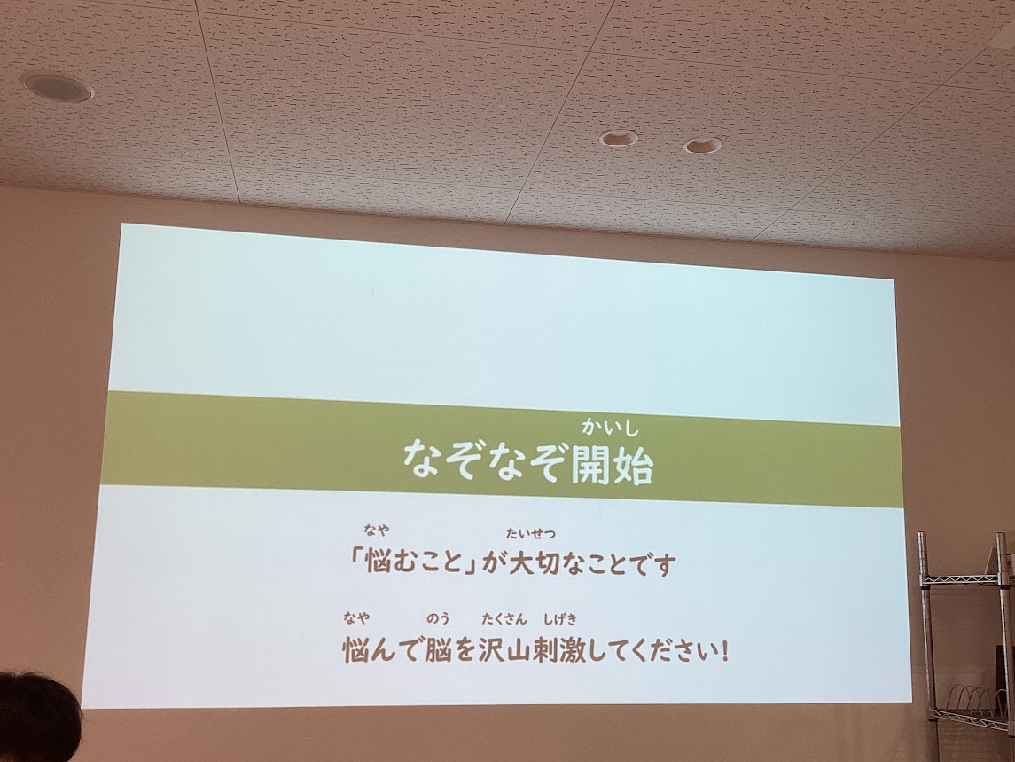 発想力を鍛えてもらうために、なぞなぞを行いました。