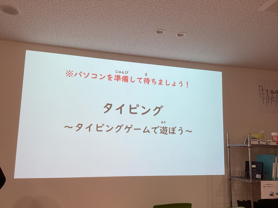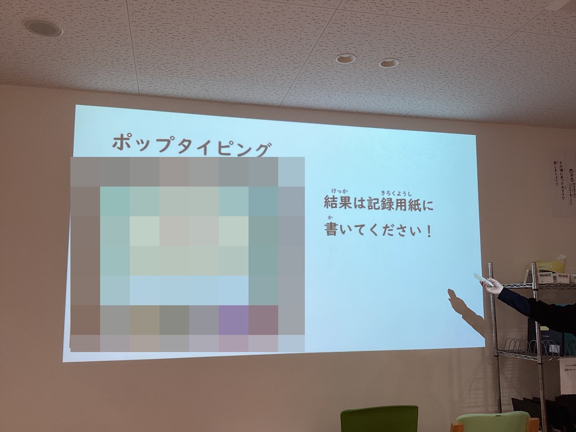 ホームポジションと姿勢を確認した後に、ポップタイピングと寿司打のタイピングゲームに挑戦しました。