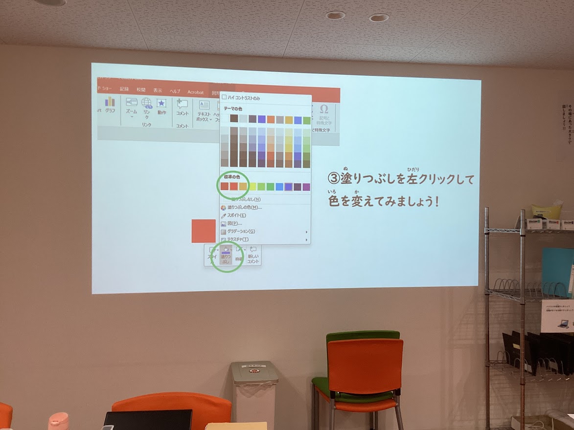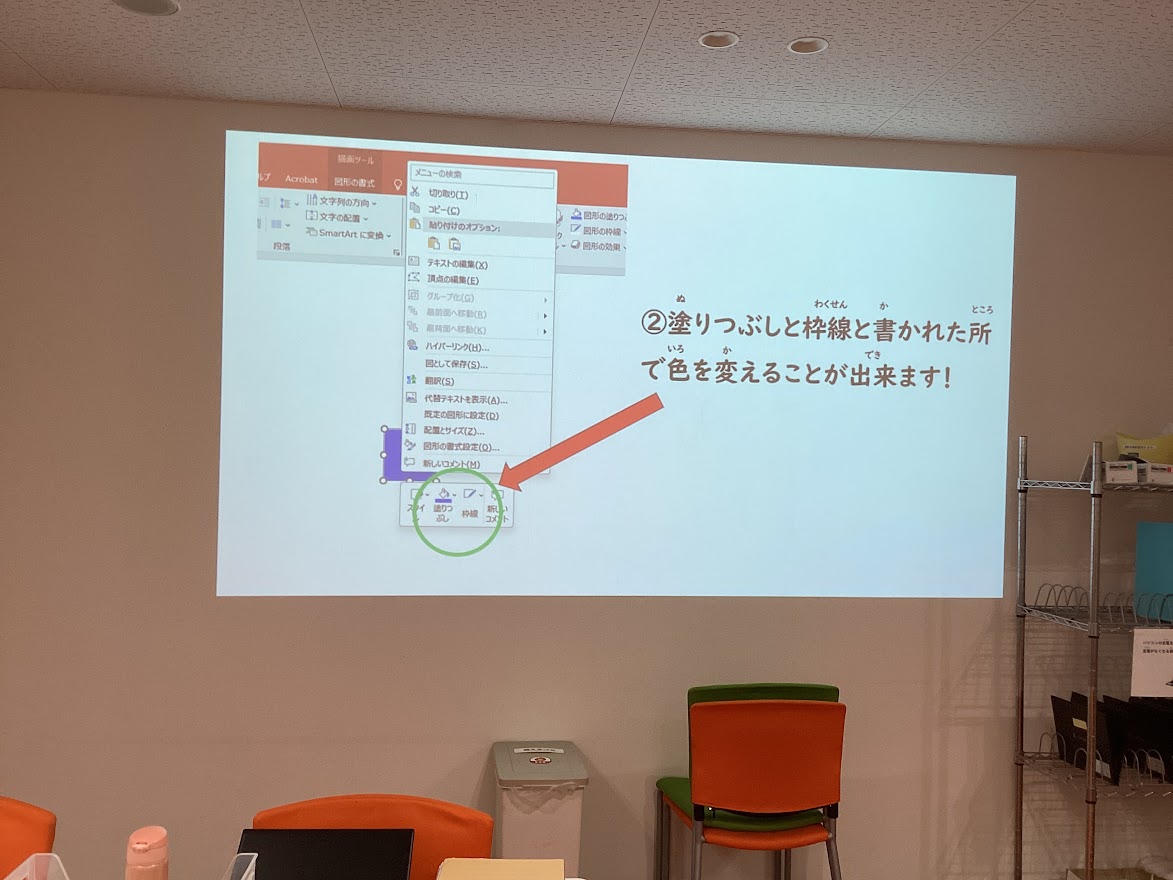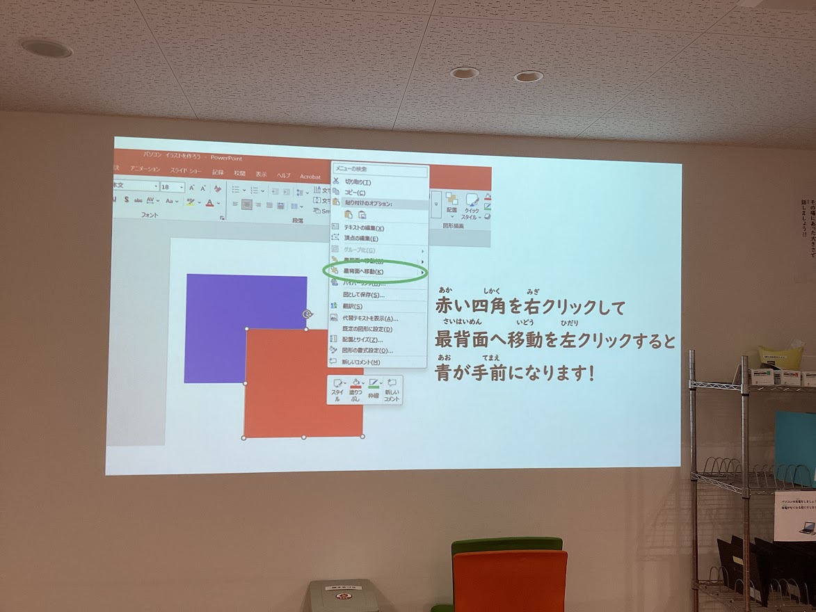 PowerPointの図形機能を使って、イラストを作る活動を行いました。