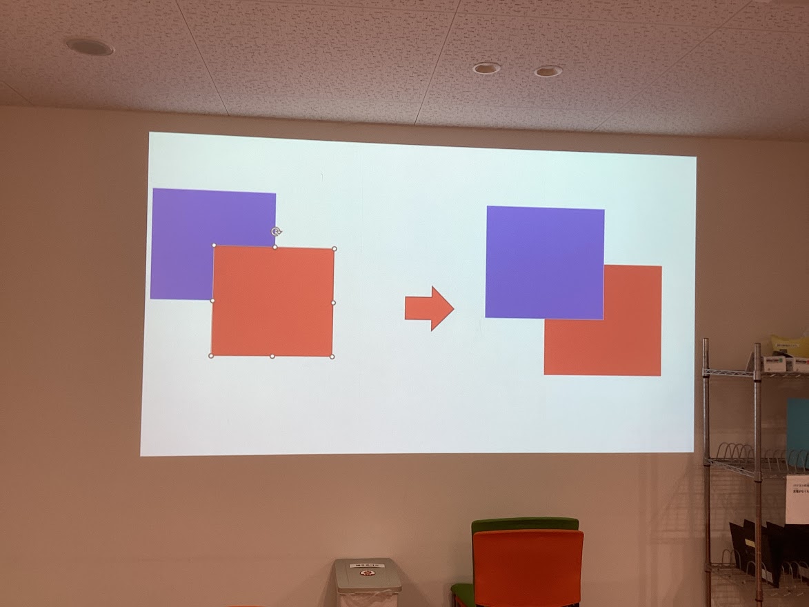 図形の前後を逆にする方法も確認しました!