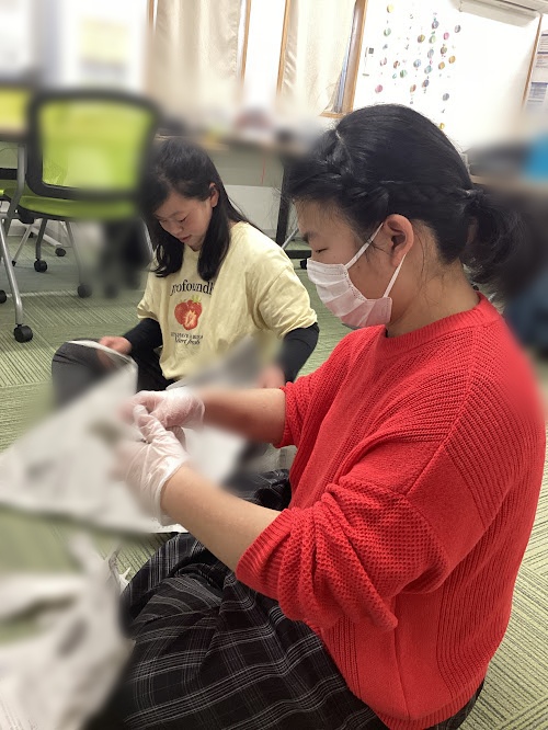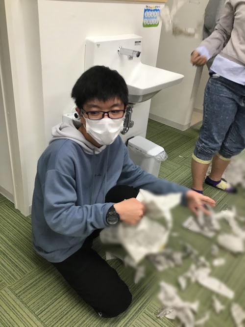 ※新聞紙をちぎるだけのエリアとちぎったあとに投げてもOKのエリアに分かれて行いました!