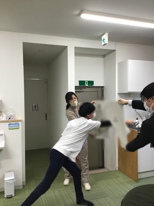 ストレスについて学んだ後に発散方法の1つとして新聞紙ゲームを行いました(*’▽’)