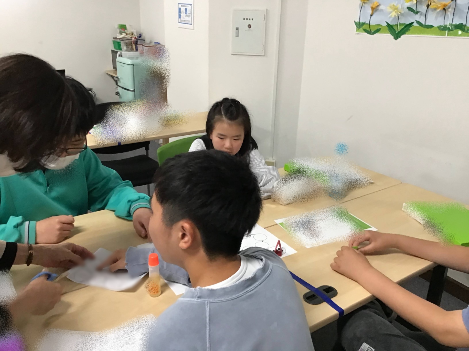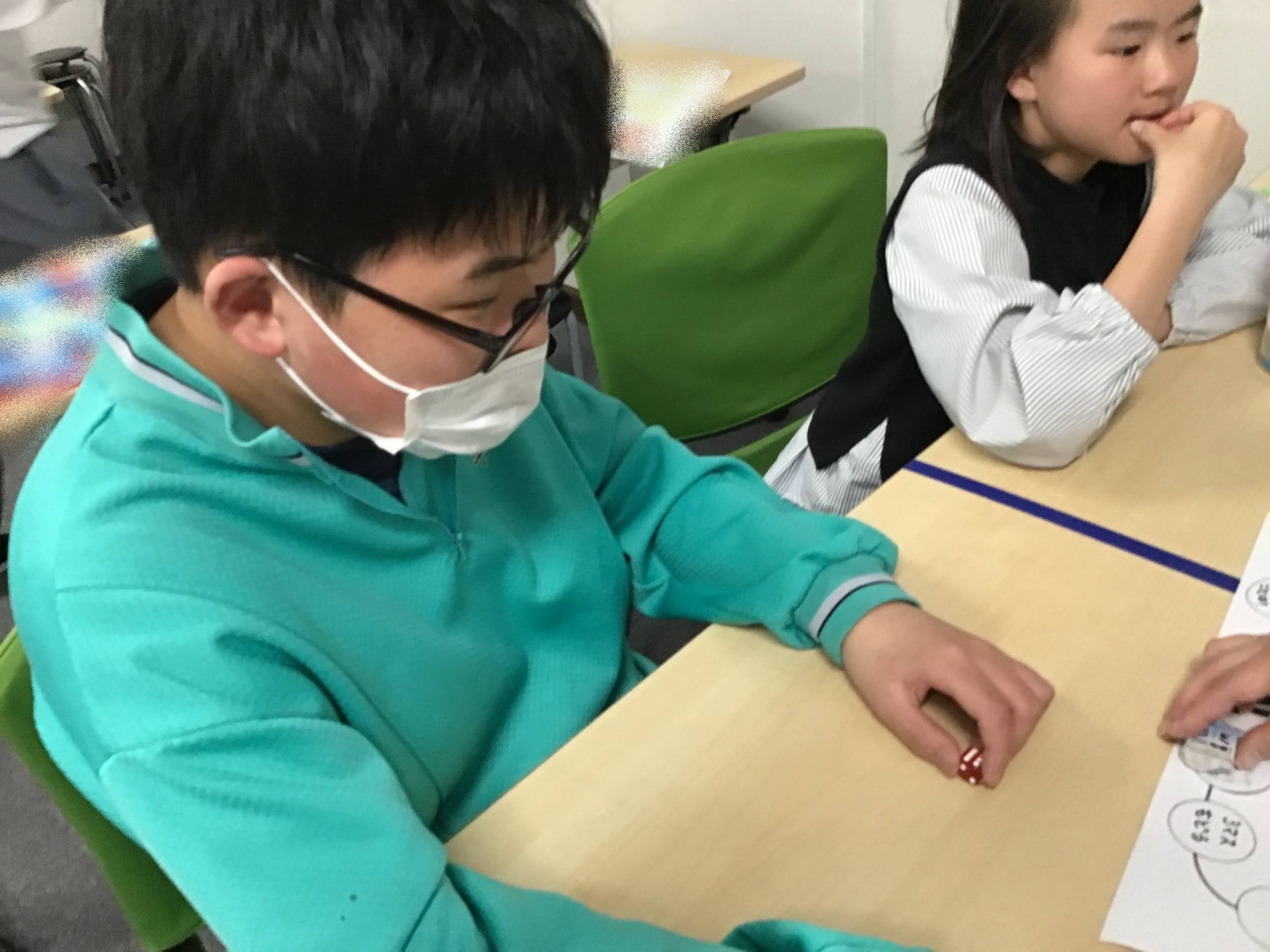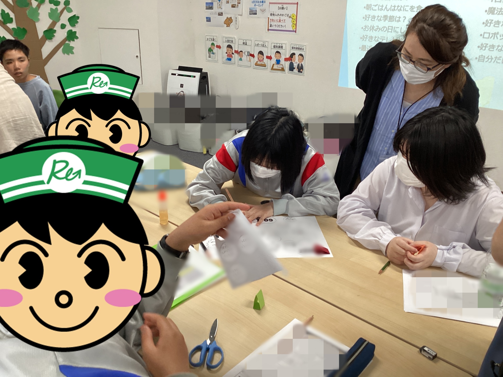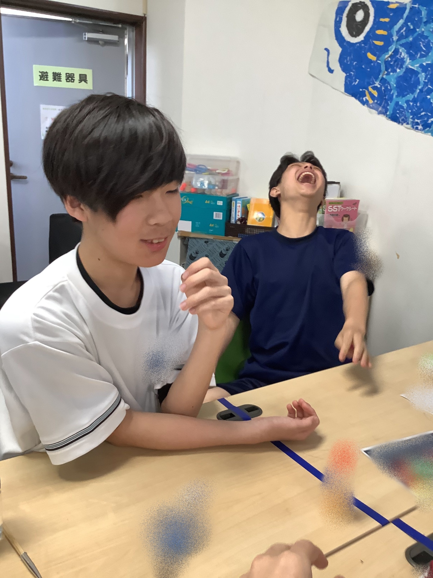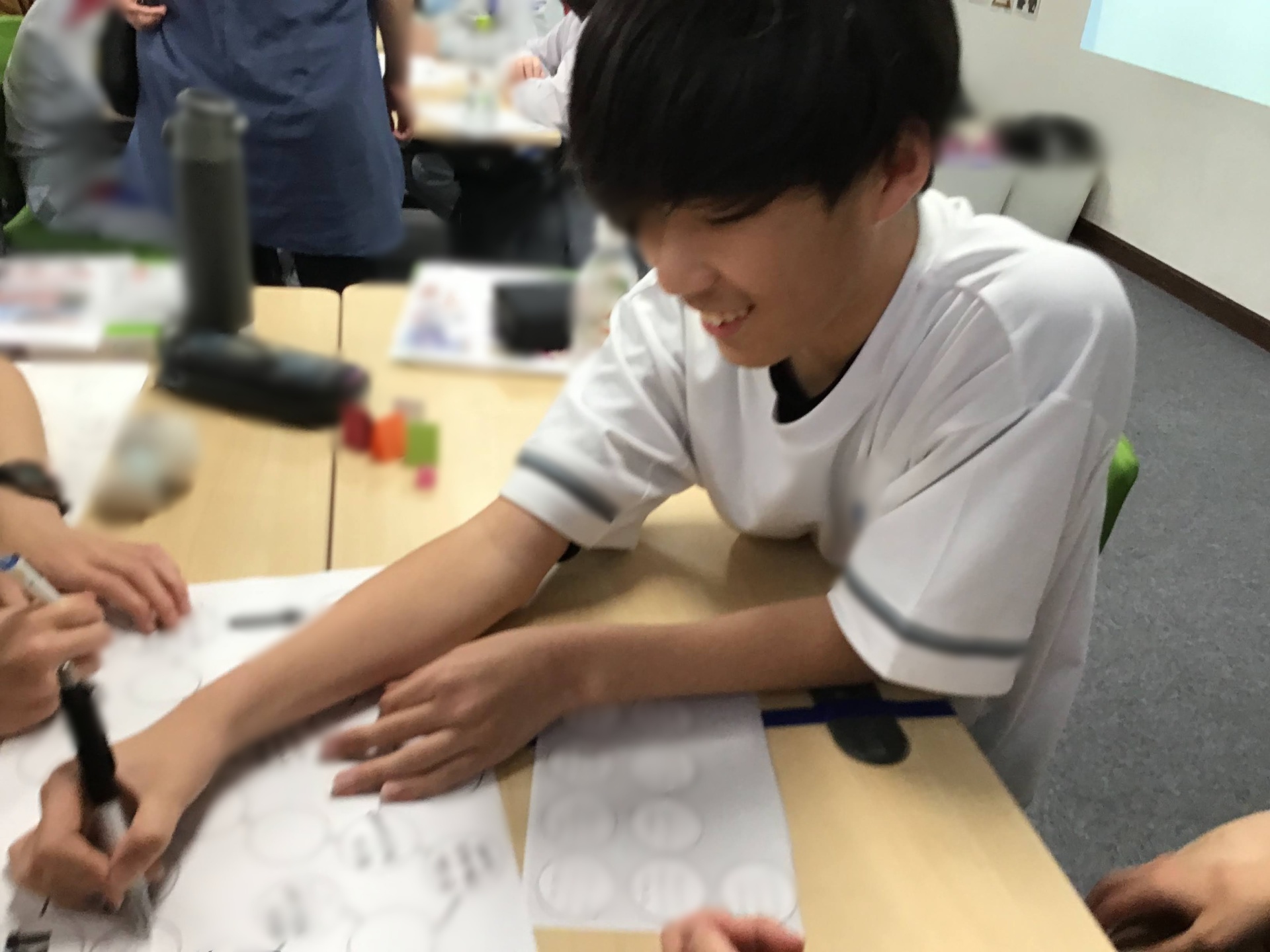 空欄のマスにはグループごとに相談しながらお題を決めてすごろくに記入する活動も行いました。話し合う中で、互いの意見を尊重しながら一つの答えを作り上げる様子が見られました。