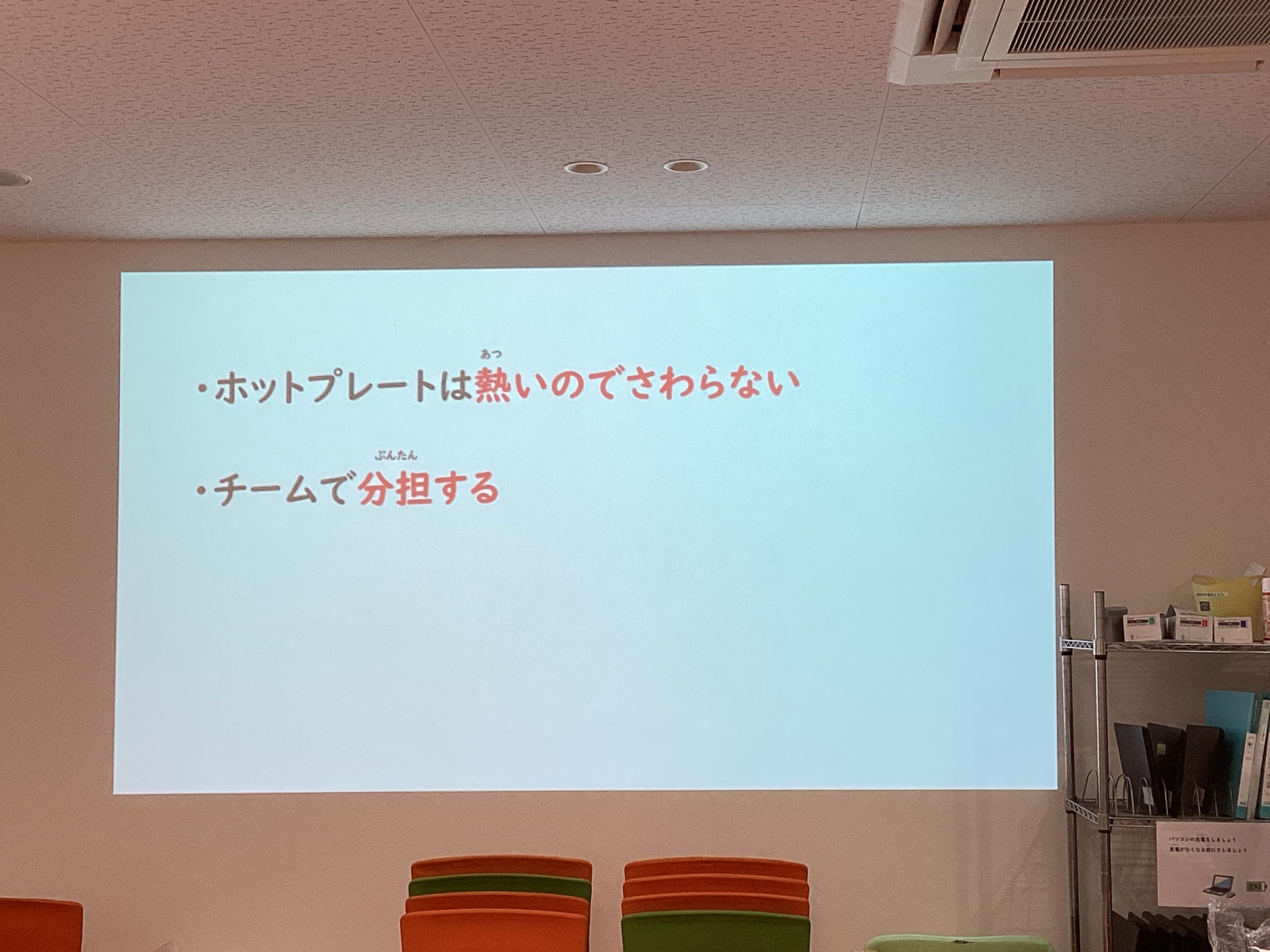 ホットプレートを使いますので、やけどには気を付けましょう!