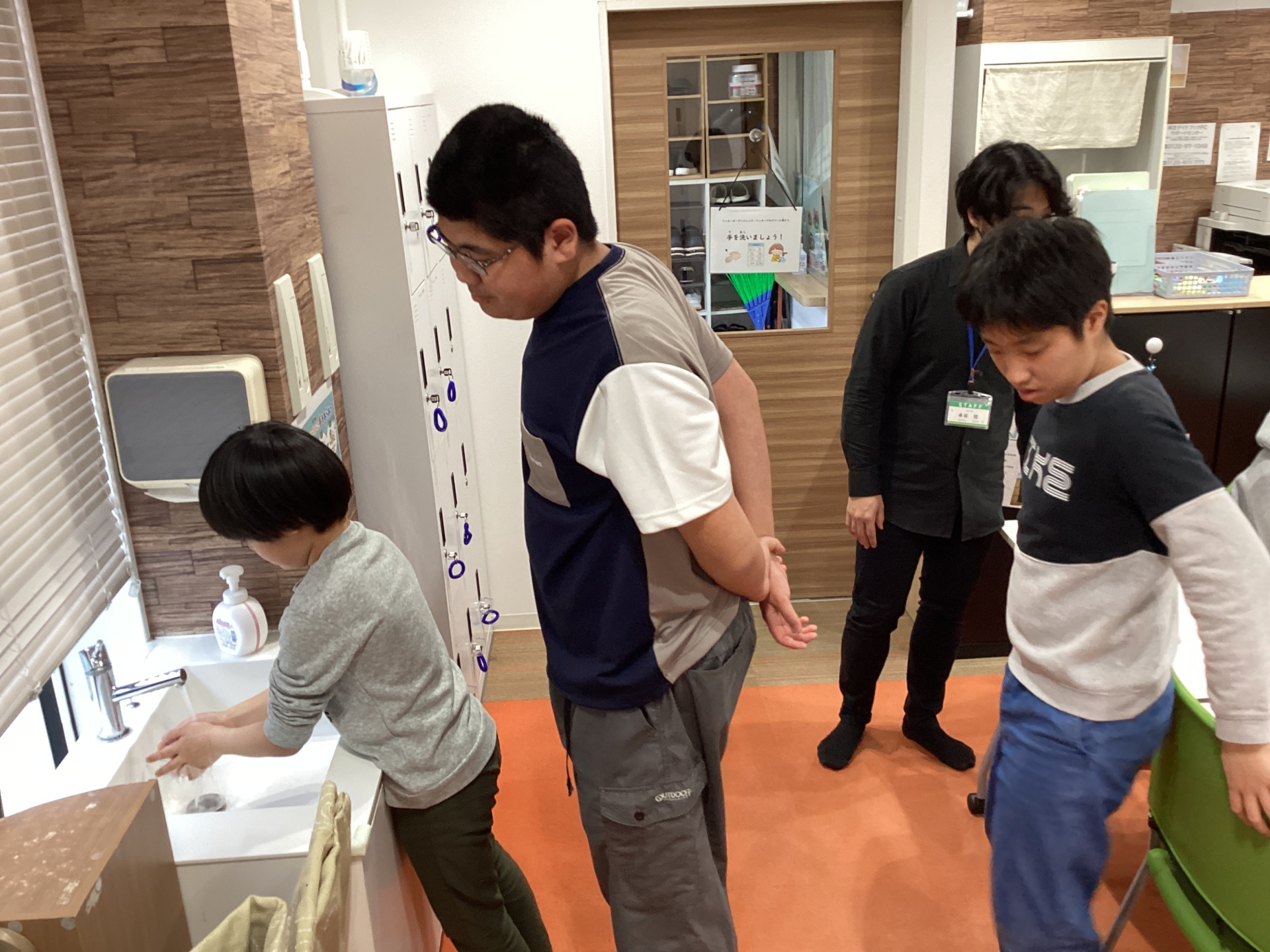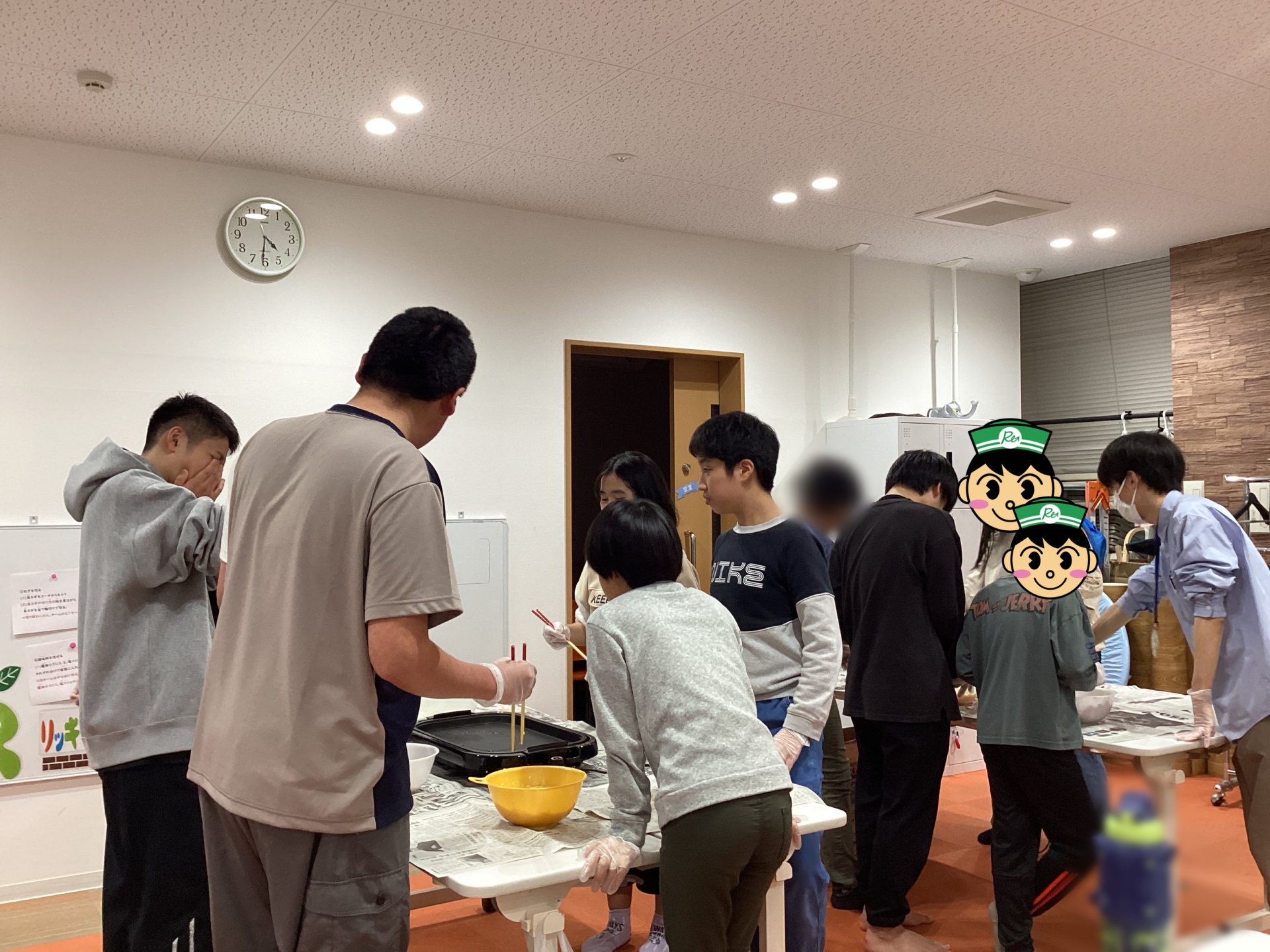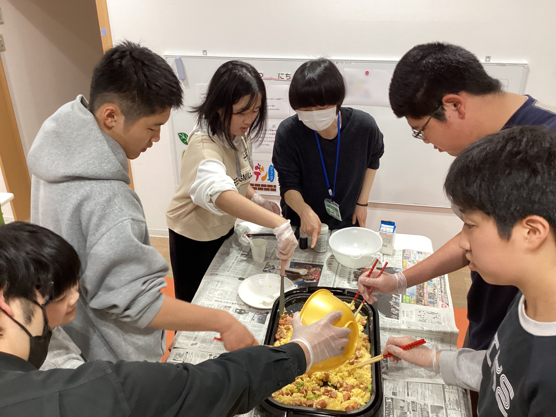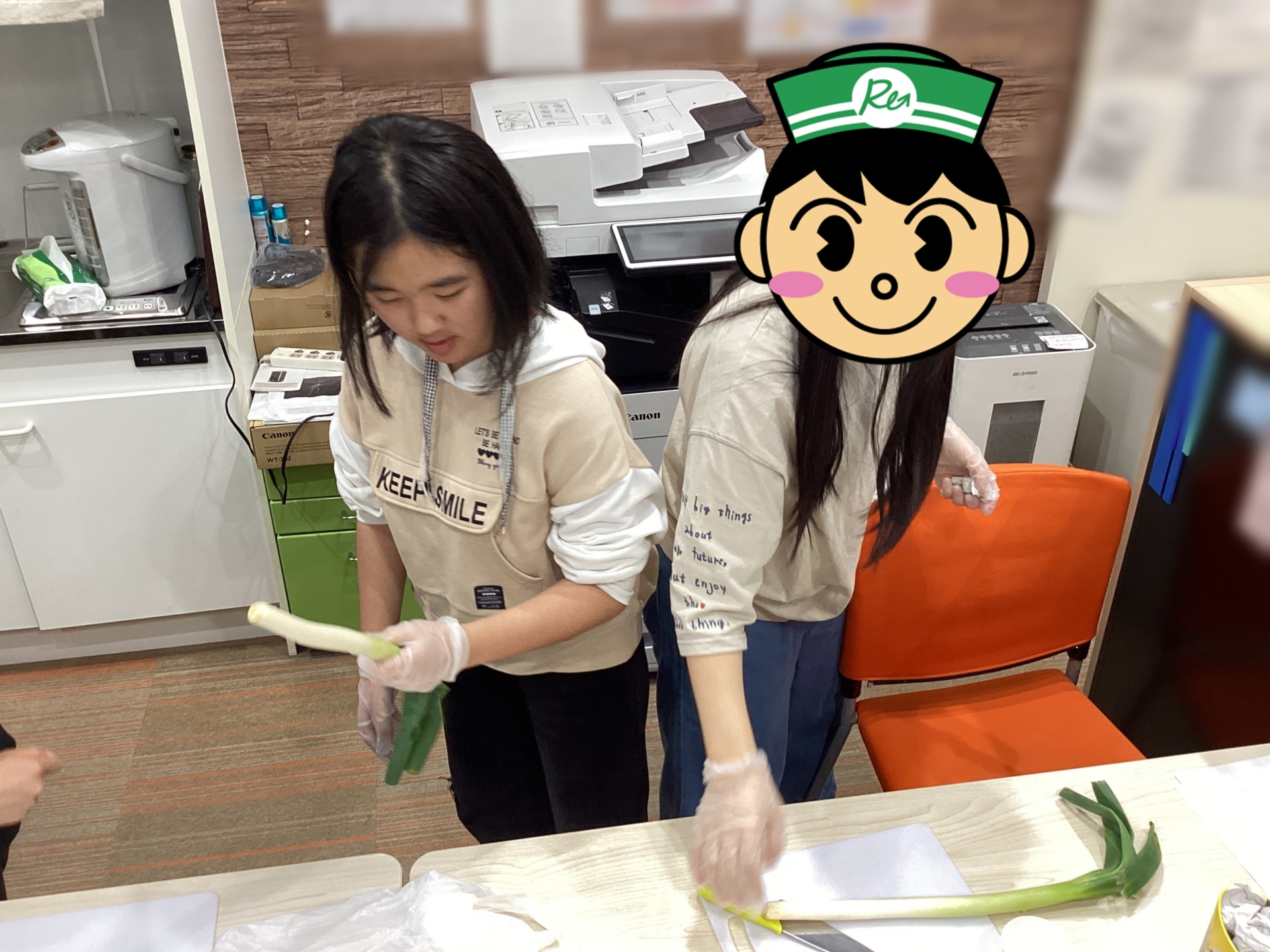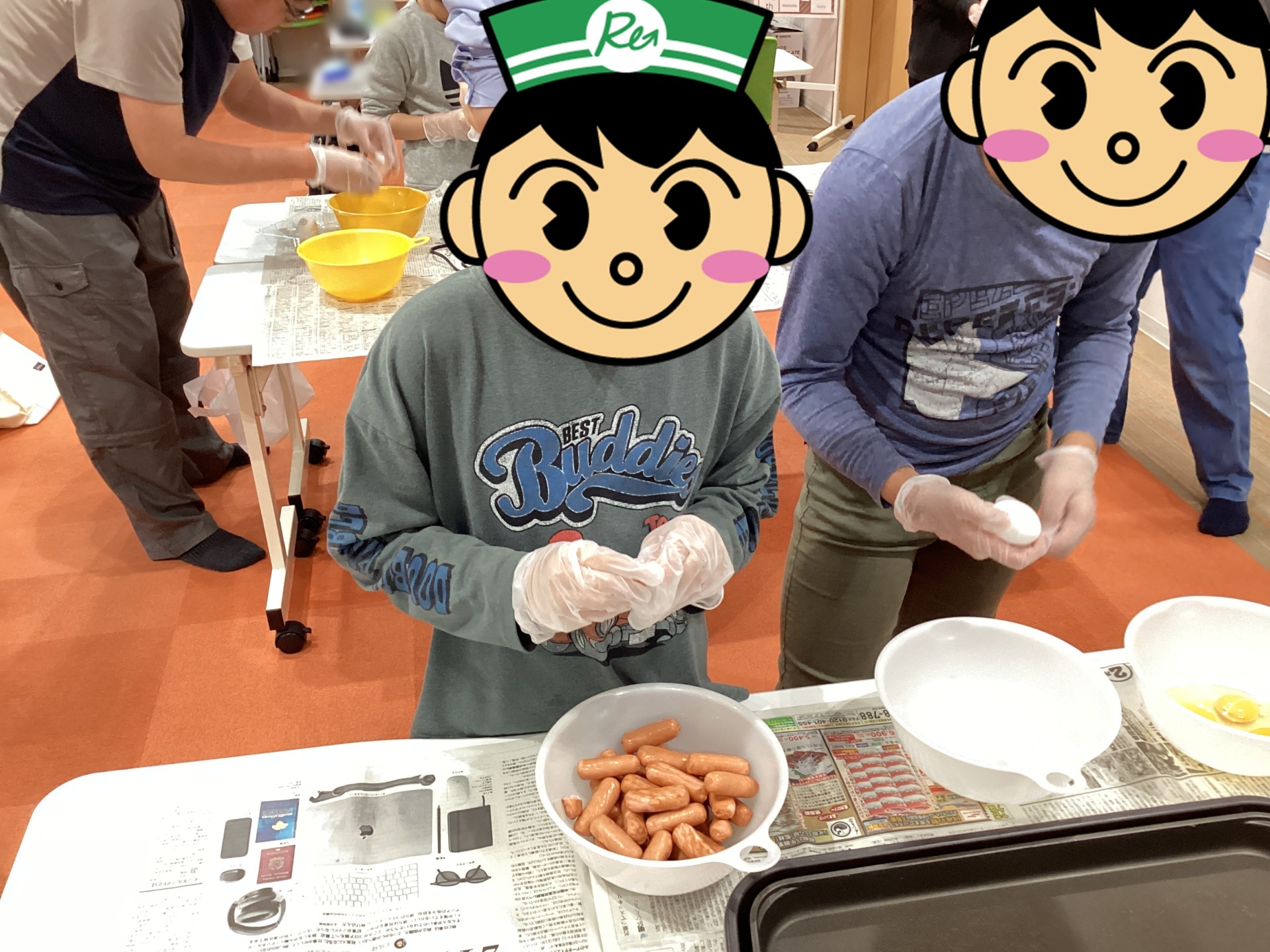ウィンナーをちぎる係、卵係、ネギを切る係など。