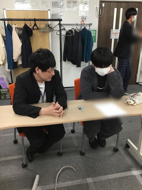 階段を上り終わったところにある入口がRickeyアカデミー長町南の入り口になります。インターフォンを押してお入りください。
